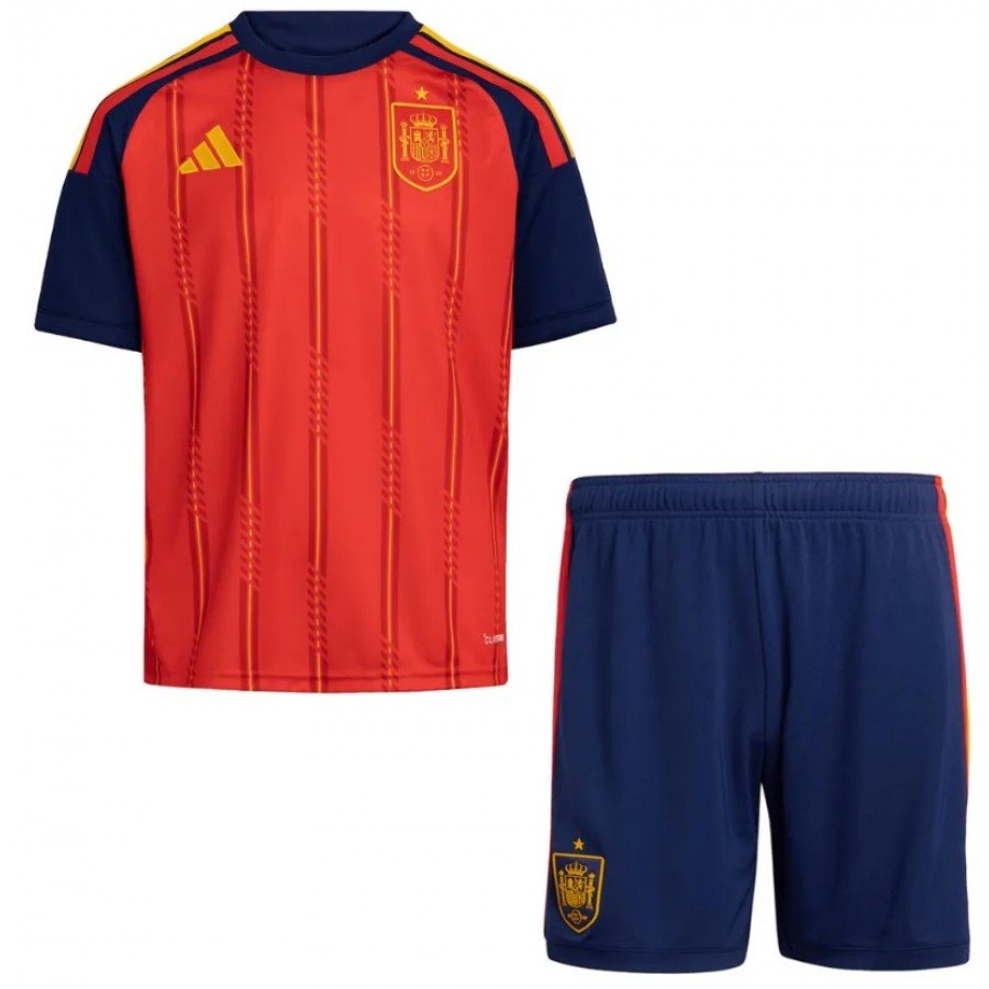 Por 129,90 o novo Kit infantil I Seleção da Espanha 2026 Adidas oficial é conjunto titular